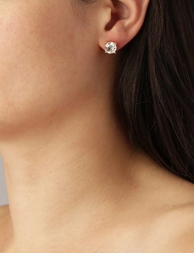 DAZE ett klassiskt örhänge med en facettslipad vit kristall, ett örhänge att använda varje dag. Smycket är tillverkat i polerad mässing med en guldtonad IP plätering. Stift i kirurgiskt stål. Längden är ca 6 mm. Handgjort. Dansk design. Fritt från kadmium, nickel och bly.